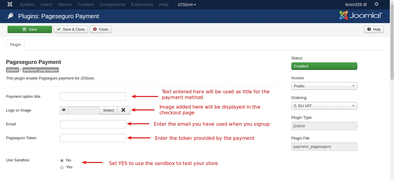 This plugin integrates Pagseguro payment gateway with J2store. PagSeguro is an e-commerce tool that mediates payments for both sellers and buyers. It offers different paying methods to the buyers.