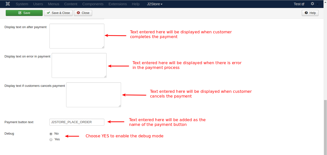 Debug Choose YES to enable the debug mode. If you set this to yes, then debug messages will be logged and saved in the cache folder in your Joomla root directory. DO NOT select YES in the live site.