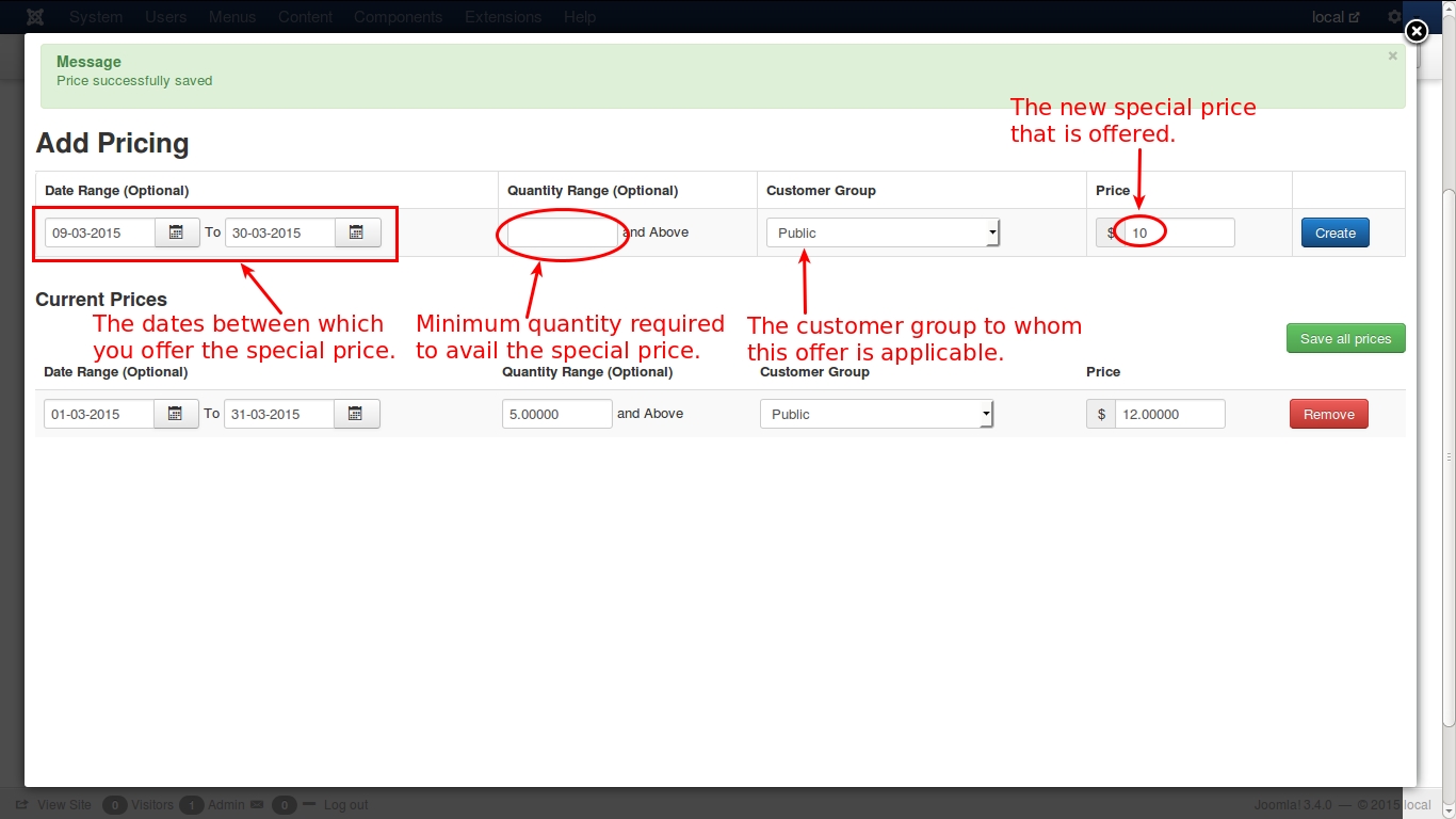 The price will be added and displayed below. You can edit that if you need, and click Save all prices. If you want to remove that, you can do it by clicking the Remove button.