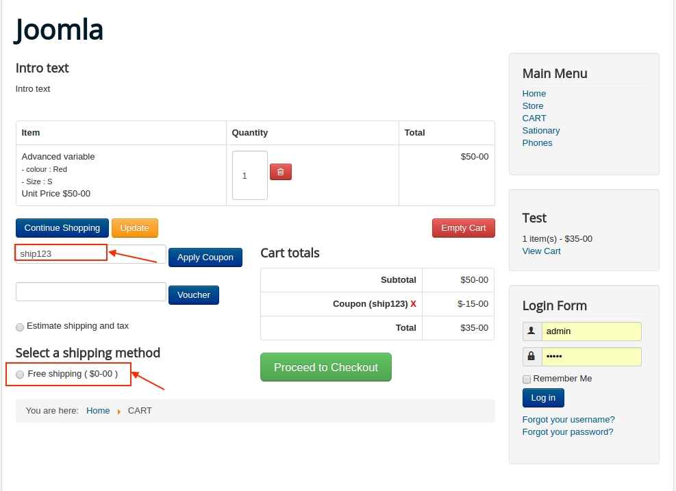 Note: This method will only show up when the user estimates the shipping cost by applying the coupon.