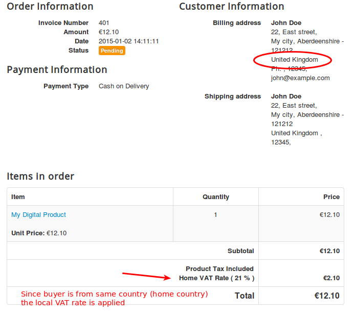 Our shop is located in United Kingdom. And the buyer is from the same country. So local tax of 21 percent applies.