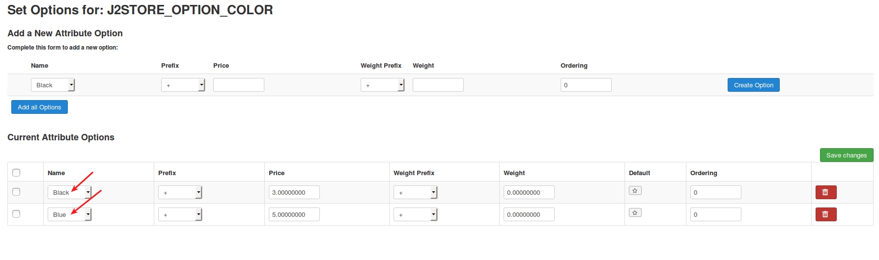2. Enter the name for your option and option values. Both names should be in the language string. Refer image below: